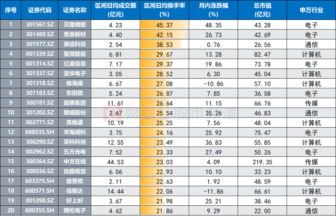 注:区间(2月28日至3月13日)日均换手率居前的TMT股